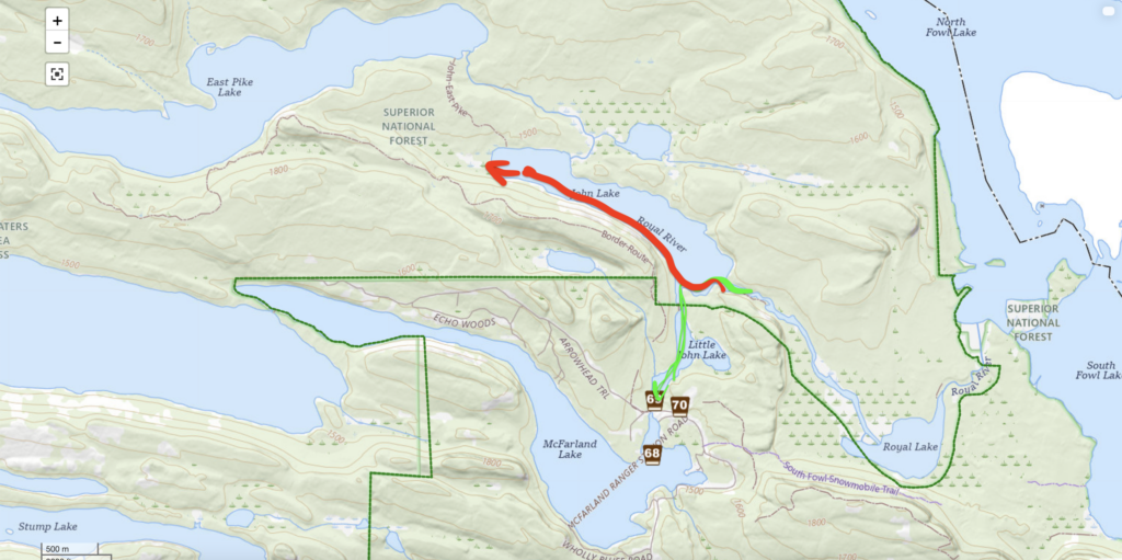 Our entry point would be at Clearwater Lake in Zone 10, the Northeastern-most zone in the BWCA. From there, we would paddle further north and east through Mountain Lake and Moose Lake, two long lakes that touch both the United States and Canada. After that, we’d circle south and then west through a handful of other lakes to make it back to Clearwater Lake in five days.